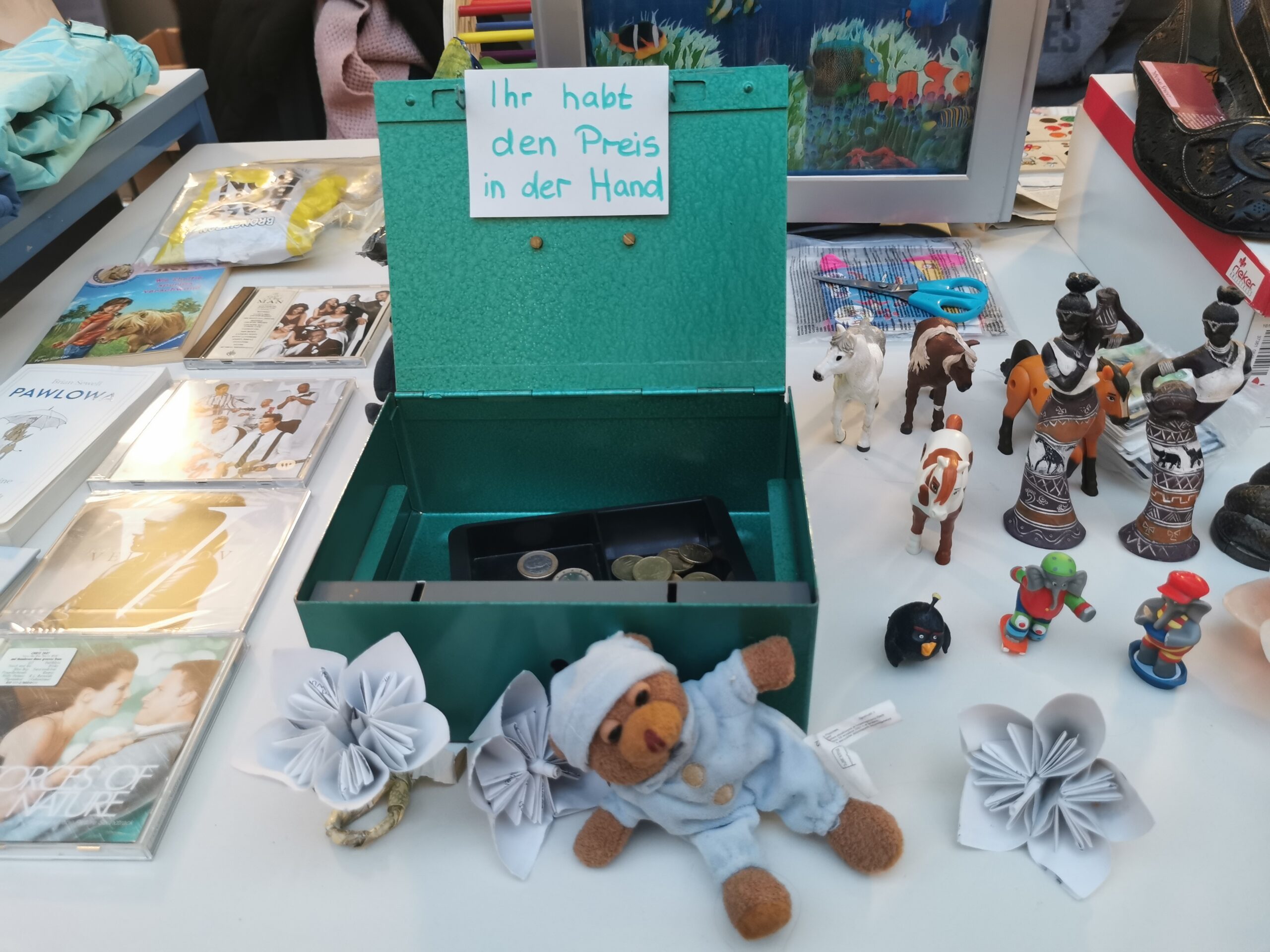 Die nicht verkauften Gegenstände werden an SOS Kinderdörfer gespendet bzw. für einen möglichen Flohmarkt im Sommer (z.B. anlässlich des Hoffestes) aufbewahrt.